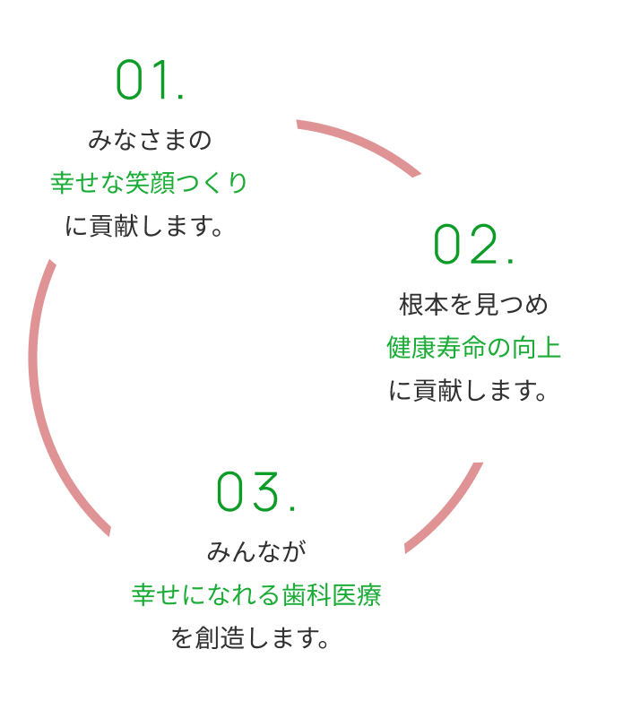当医院の歯科医師、歯科衛生士、歯科技工士、受付、事務方も全員この考えを理解し、日々診療に取り組んでおります。